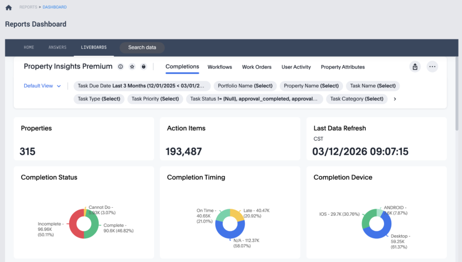 - Refine a search by adding additional fields such as Property Name, Task Status, or Technician.