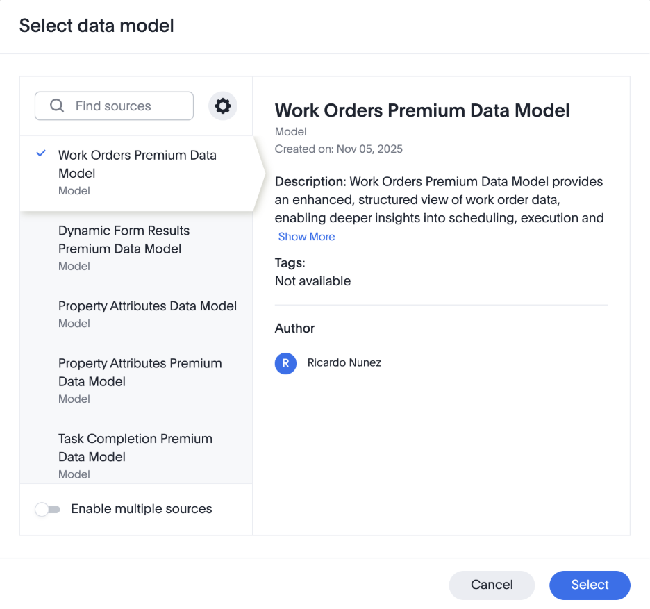 - Tip: Make sure you have the Work Orders Data Model selected.