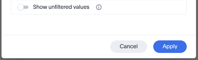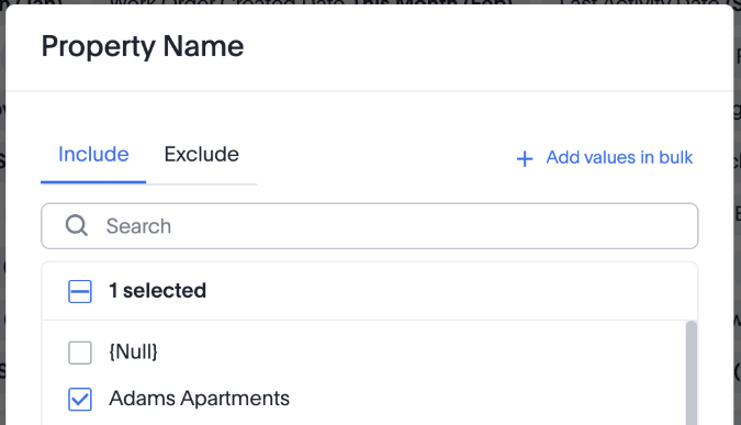 - Once you’ve selected a filter, you’ll be prompted to include or exclude a set of filter values.